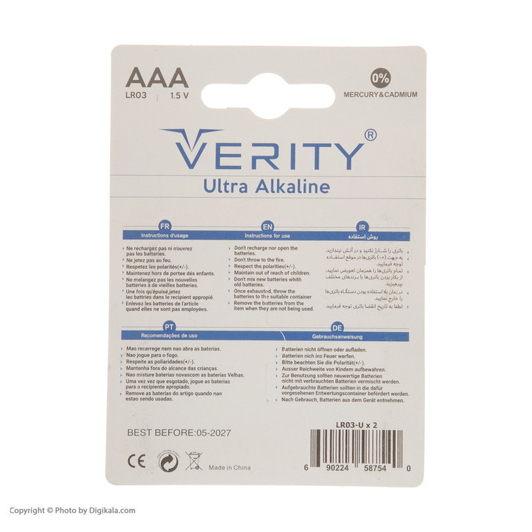 تعداد باتریهای همراه: 2 عدد باتری نیم قلمی (سایز AAA)