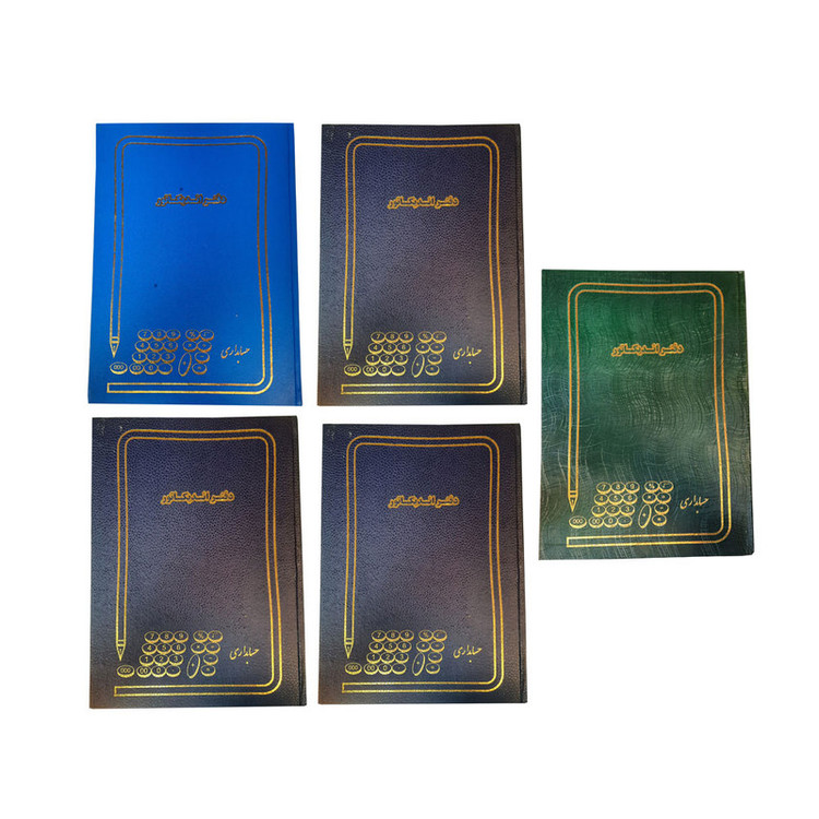 دفتر اندیکاتور 100 برگ که مناسب برای اداره جات و دفاتر است که در قطع رحلی و با جلد گالینگور است و در 3 رنگ سورمه ای و سبز و آبی است که 3عدد رنگ سورمه ای و یک عدد رنگ سبز و یک عدد رنگ آبی است. بسته 5 عددی از این دفتر بسیار مناسب برای همه اداره جات می باشد.