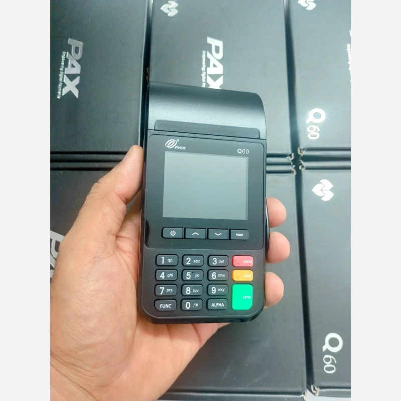 سلام دوست من لطفاً قبل از خرید مطالب رو کامل بخون 1.قیمت درج شده با تمام هزینه های ثبت و فعال سازی در نظر گرفته شده. 2.حتما قبل از خرید در قسمت پیامهای غرفه اطلاعات بیشتر رو کسب کنید 3.برای فعال سازی دستگاه نیاز به مدارک هویتی و بانکی شما داریم که دستگاه به حسابتون متصل بشه که در بخش پیام خدمت شما اعلام میشه 4.یک عدد سیمکارت رایگان هم خدمتتون ارسال میشه توضیحات اجمالی دستگاه کارتخوان Q60 از برند پکس دارای پردازنده قوی با سرعت بالا، صفحه نمایش 2.4 رنگی با قابلیت اتصال به شبکه WiFi و پشیتبانی از شبکه 4G است. این دستگاه POS با طراحی جمع و جوری که دارد، جدیدترین استانداردهای امنیتی را دریافت کرده و بی شک یکی از بهترین انتخابهای شما برای انجام انواع تراکنشهای مالیتان است. کارتخوان بی سیم جدید شرکت پکس با قابلیت استفاده از سیم کارت و همچنین WiFi است که از شبکه ارتباط 4G پشتیبانی میکند. دارای صفحه نمایشگر 2.4 اینچی رنگی است. دستگاه PAX Q60 با جدیدترین استانداردهای امنیتی صنعت پرداخت از جمله PCI PTS 6 و گواهینامههای بدون تماس، یک پایانه POS دستی با اتصال 4G است که به عنوان یک دستگاه جمع و جور طراحی شده است که از انواع تراکنشها پشتیبانی میکند مشخصات فنی: نوع ارتباط: GPRS (WCDMA) + WiFi, Bluetooth, Ethernet, PSTN دوربین پشت: 0.3 مگاپیکسل پورتها: یک عدد پورت تایپC چاپگر: چاپگر حرارتی با سرعت 40 میلیمتر بر ثانیه باتری: لیتیومی قابل شارژ - 2450mAH , 3.6V پردازنده با سرعت بسیار بالا صفحه نمایش 2٫4 اینچی 320 در 240 پشتیبانی از شبکه 4G 19 کلید جهت بهبود عملکرد انعطاف پذیری و قابلیت اطمینان بسیار سبک و قابل حمل ابعاد کوچک و سهولت در حمل و نقل حافظ محیط زیست