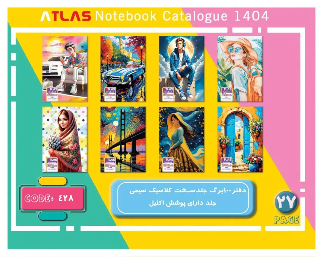 دفترجلدسخت سیمی۱۰۰برگ طرح کلاسیک تک سلفون ،داخلهگ کد۴۲۸