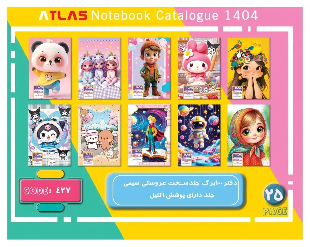 دفترجلدسخت سیمی۱۰۰برگ طرح فانتزی تک سلفون،داخلهگ کد۴۲۷