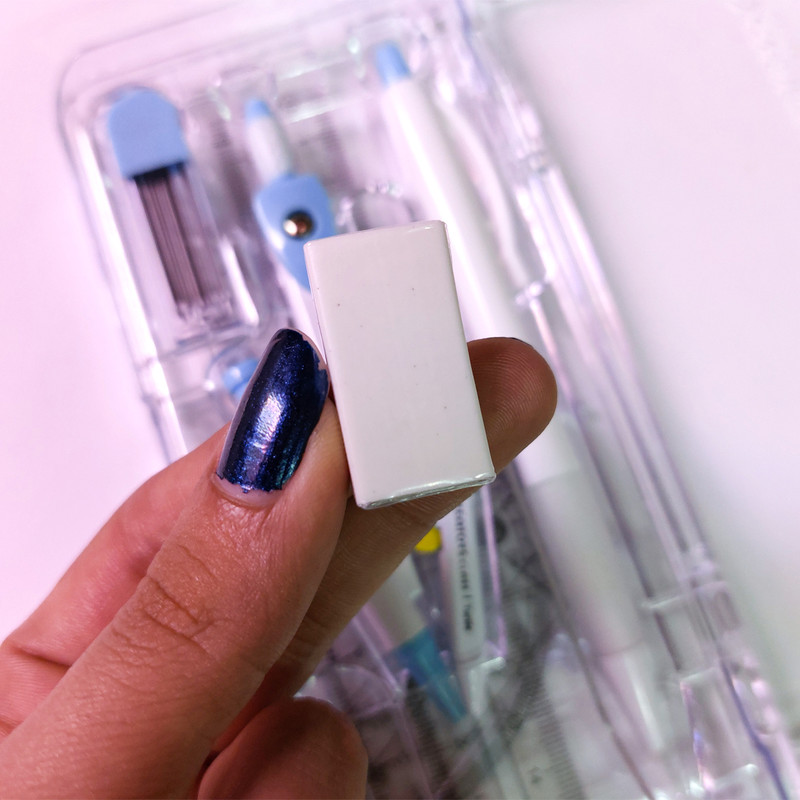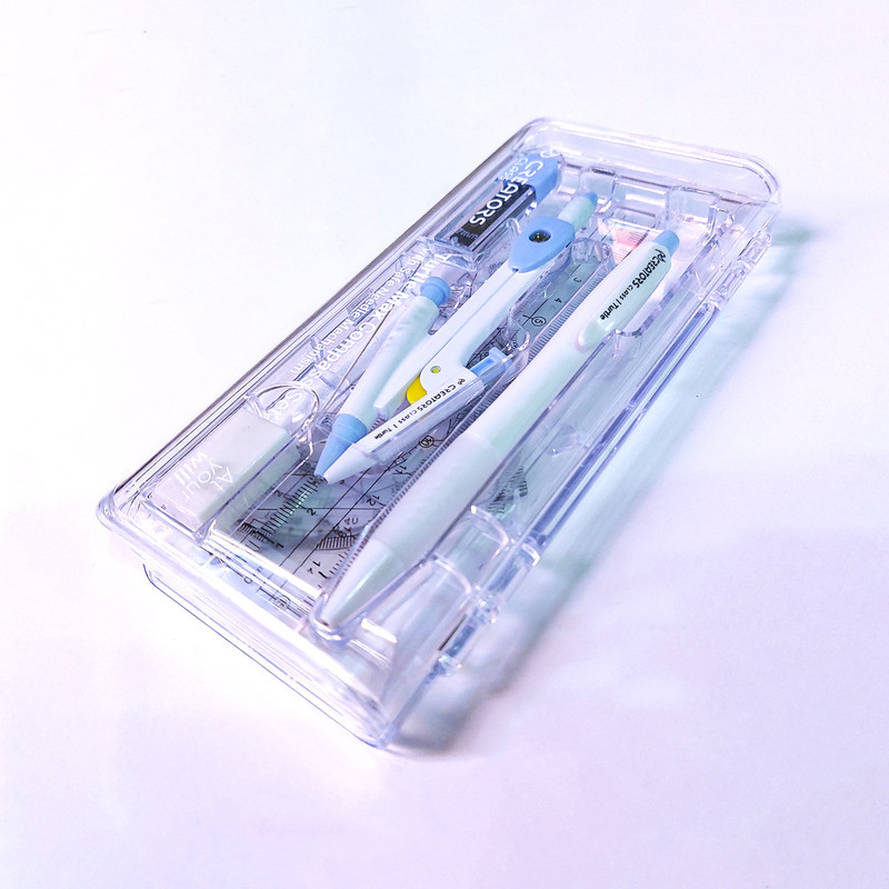 این ست شامل یک اتود، پاککن، نوک مداد نوکی 0.7، خط کش، گونیا در دو سایز 45 درجه و 90 درجه و نقاله است.