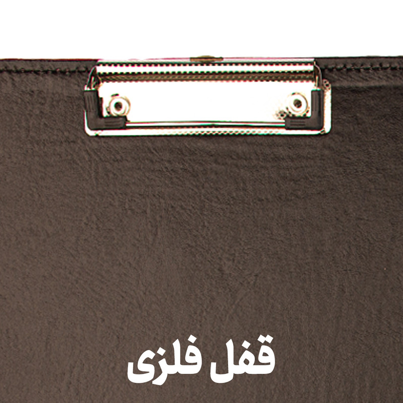 سایز A4، قفل فلزی، کلاسوری(تاشو)، دارای جیب داخلی، دور دوخت شده
