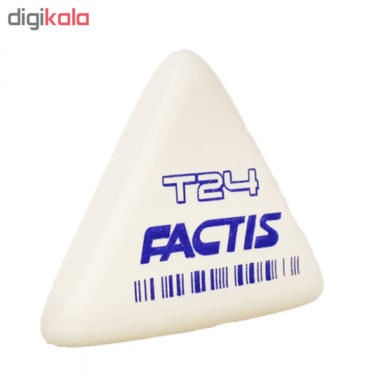 مثلث نزدیک ترین شکل به ساختار دست انسان است، به همین دلیل است که استفاده از نوشتافزارهای مثلث شکلی مانند پاککن T24 «فکتیس» (Factis) دست را خسته نمیکند. این پاککن بهخوبی اشتباهات نوشتاری شما را از بین برده و اطراف محل کار شما را کثیف نمیکند. پاککن T24 فکتیس به شکل یک مثلث متساویالاضلاع است. این پاککن بهراحتی در بین انگشتان شما قرار گرفته و به همین دلیل در استفادهی طولانیمدت آسیبی به دست شما نمیزند. با این محصول هیچ اثری از اشتباه نوشتاری شما به جا نخواهد ماند تا شما بتوانید درست از همان جایی که اشتباه کردید، نوشتن را دوباره آغاز کنید. میزان پرزی که در اثر کار با این پاککن تولید میشود بسیار کم است. این امر از کثیف شدن دفتر و کتاب یا محیطی که در آن مشغول نوشتن هستید جلوگیری میکند. لذت نوشتن با مداد یا مداد نوکی زمانی دو برابر میشود که یک پاککن خوب هم برای پاک کردن اشتباهاتتان در اختیار داشته باشید. پاککن T24 فکتیس به دلیل قدرت پاککنندگی بالا، شکل مثلثی و تولید حداقل پرز برای کسانی که در طول روز با نوشتن با مداد یا مداد نوکی سروکار دارند، یک انتخاب بسیار مناسب است.