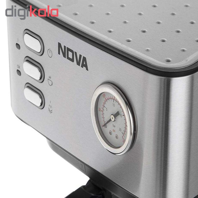 دستگاه اسپرسوساز ندوا مدل NCM-147EXPS با گرمای و فشار بخار 15 بار نشان دهنده ی قدرت بسیار خوب است. اسپرسوساز ندوا مدل NCM-147EXPS با فشار بخار 15 بار و با ظرفیت توان 850 وات مجهز به نشانگر فشار پمپ ،سیستم قطع دستی و نازل تولید بخار و آب جوش است که از آن برای تهیه کاپوچینو و کف شیر و انواع نوشیدنیهای گرم استفاده می شود. در مدل اسپرسوساز ندوا مدل NCM-147EXPS نازل بخار قابل چرخش طراحی شده است . اسپرسوساز ندوا مدل NCM-147EXPS آبِ جوش را با فشار خیلی زیاد از بین دانههای قهوهٔ آسیاب شده ریز میگذراند. قهوه اسپرسو غلیظتر از قهوههای دیگر بوده را خارج می کند و نوش جان کنید.اسپرسوساز ندوا NDVA NCM-147EXPS مجهز به صفحه ی گرم نگهداره ی فنجان است که به شما کمک میکند تعداد بیشتری فنجان قهوه را پیش گرم کنید و از نوشیدن یک فنجان اسپرسو خوب لذت ببرید.در این دستگاه از بویلر و پمپ آب قویتری استفاده شده است که بر روی درجه حرارت قهوه خروجی و همچنین بخار آب تاثیر گذار است. اسپرسوساز ندوا مدل NCM-147EXPS مناسب مصارف خانگی و یا کافه های کوچک است .